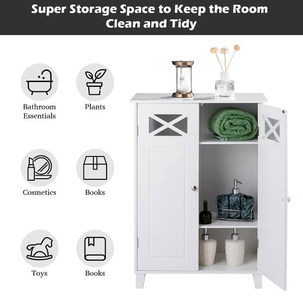 Shop Costway Free Standing Bathroom Cabinet Double Doors Wooden