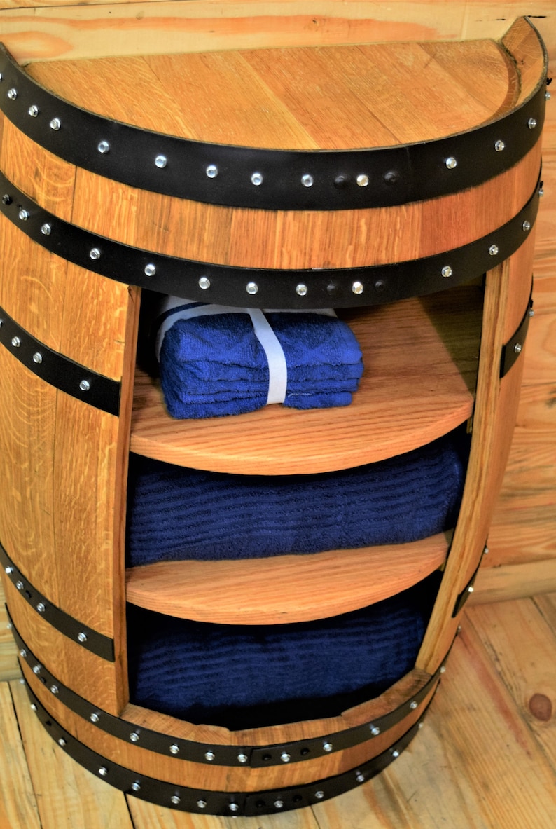Barrel Bathroom Towel Or Linen Cabinet With 3 Solid Oak Etsy