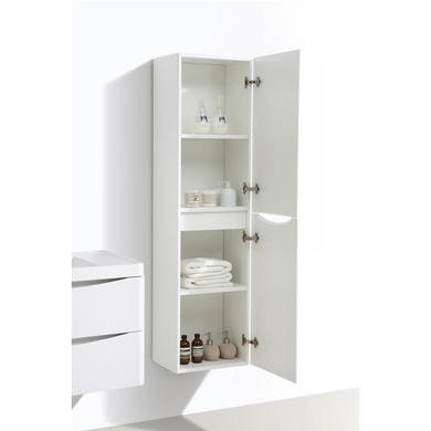 White Wall Hung Tall Bathroom Storage Cabinet 400mm Wide