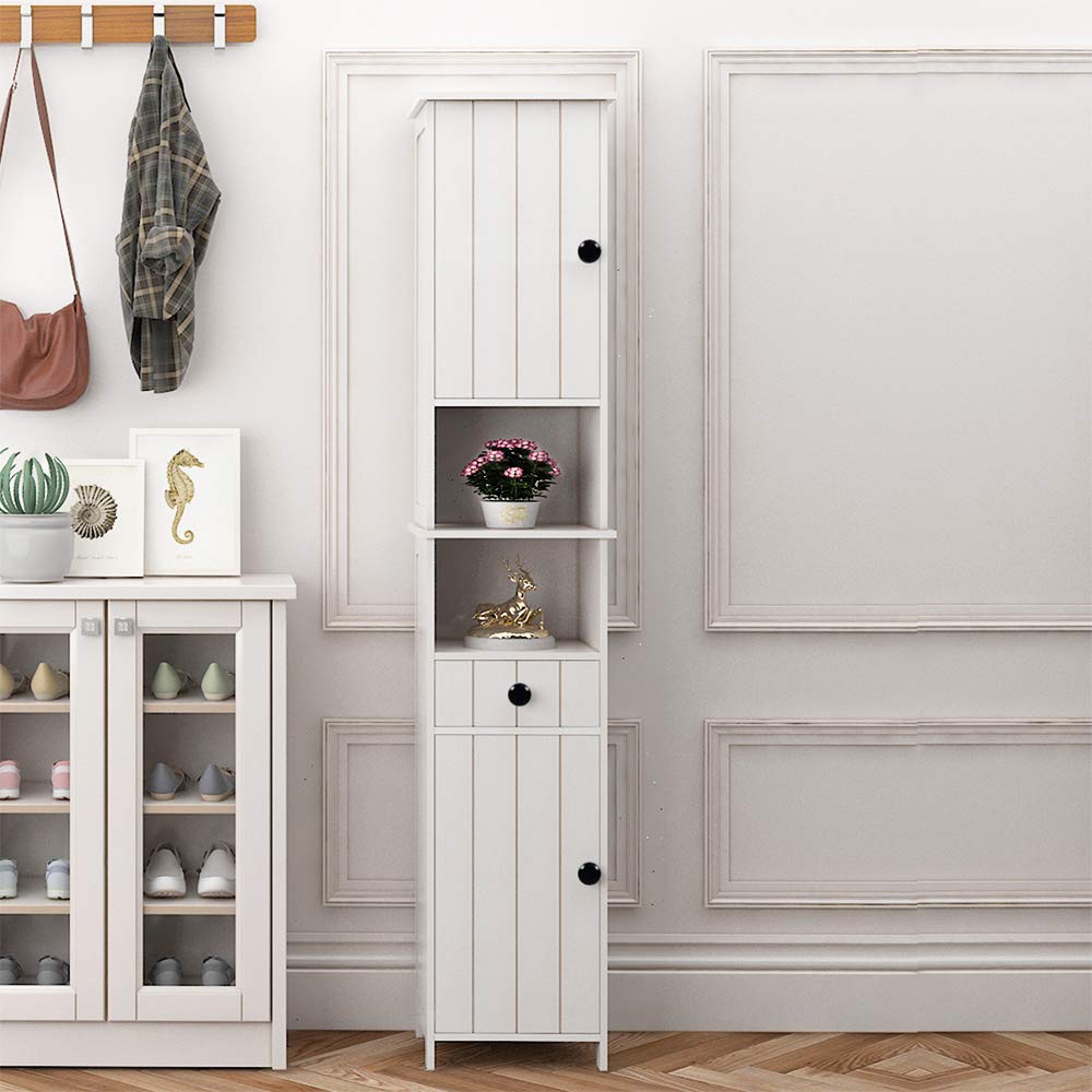 White Soges Bathroom Tall Storage Cabinet Detachable Corner