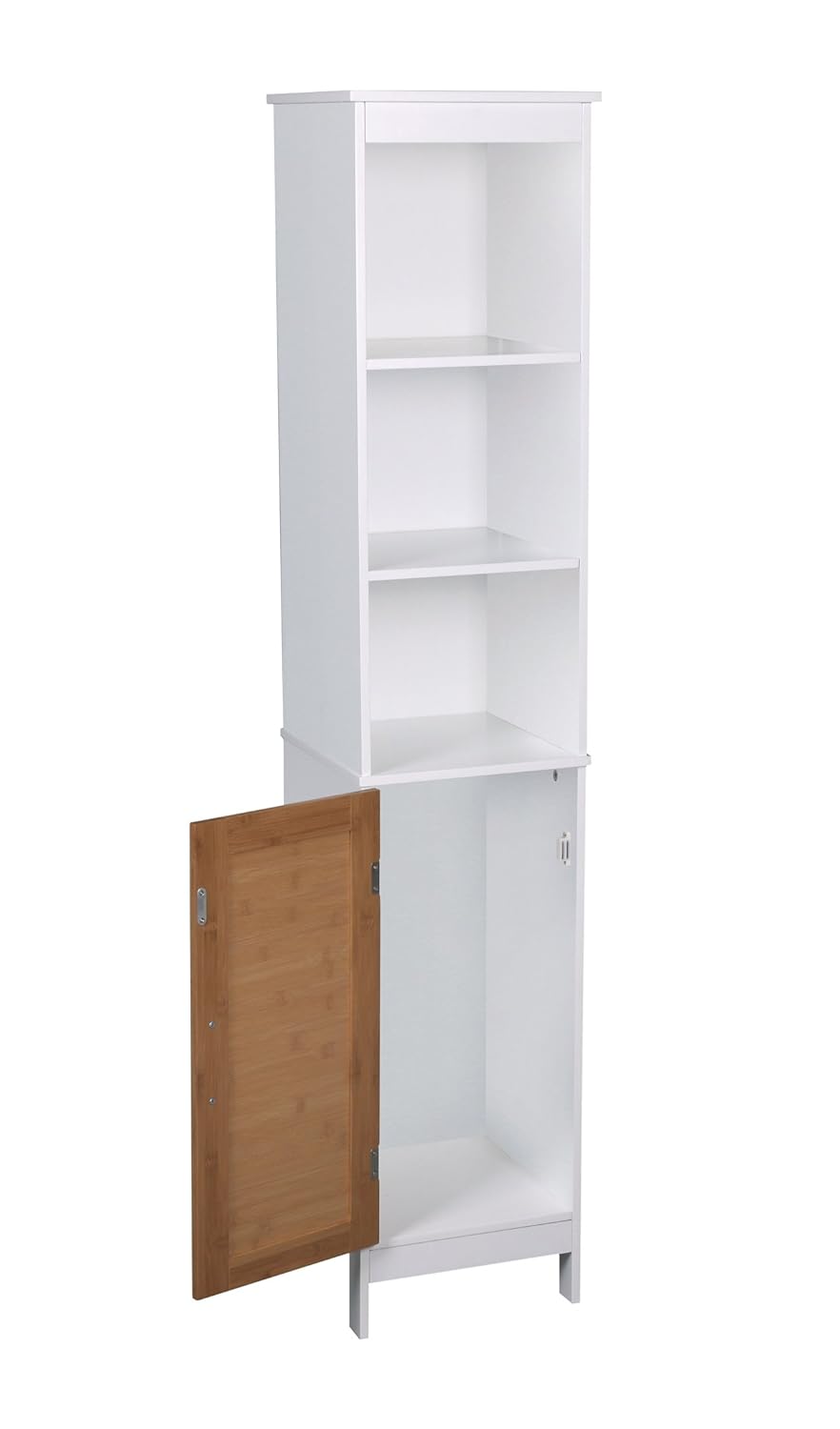 Home Source Tall Slim White Bathroom Storage Cabinet 3 Shelf Unit