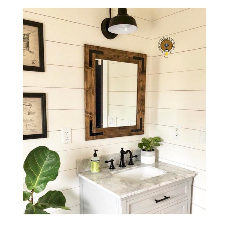 Dark Walnut Mirror Framed Mirror Rustic Wood Bathroom Mirror