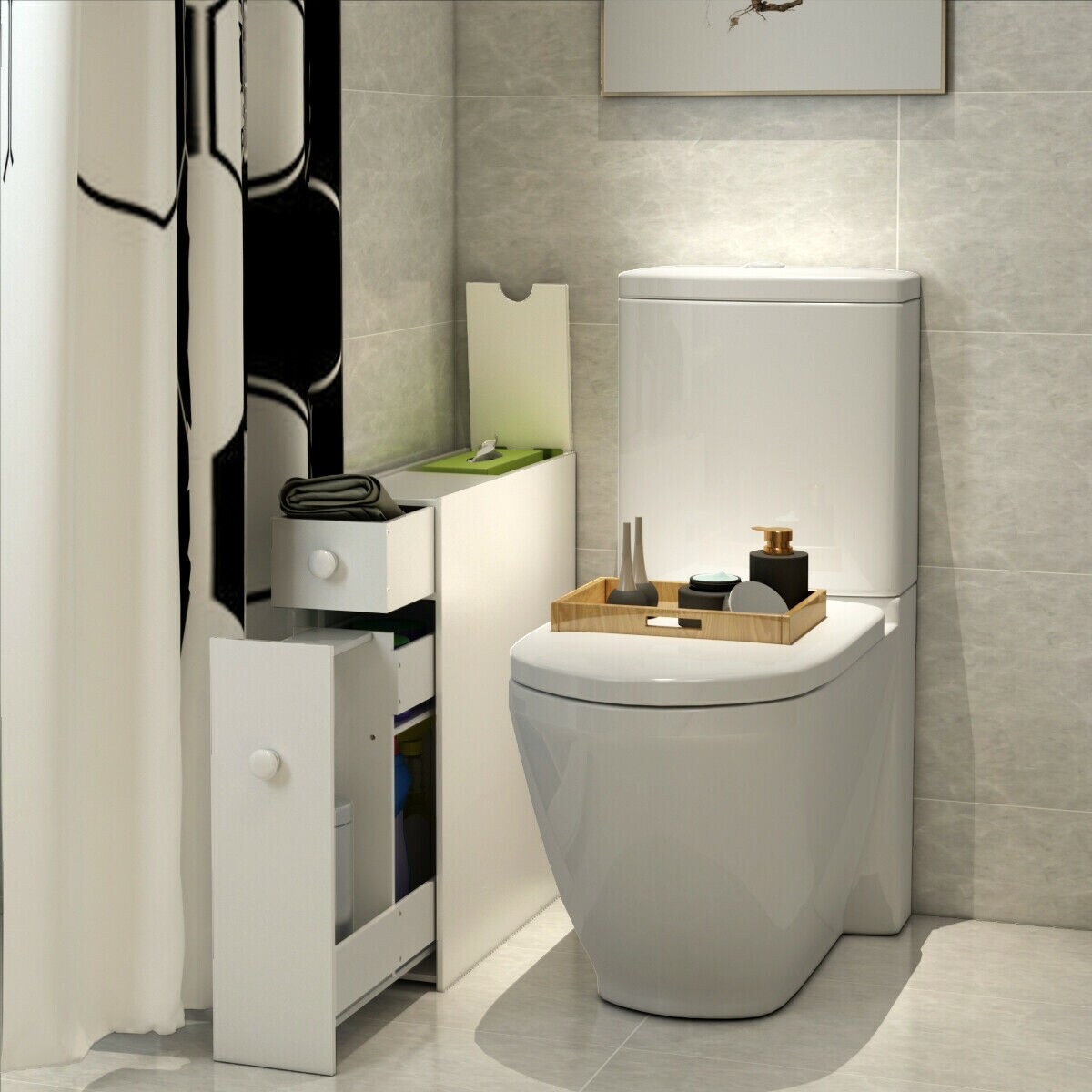 New Slim Bathroom Storage Organizer Cabinet Toilet Brush Holder