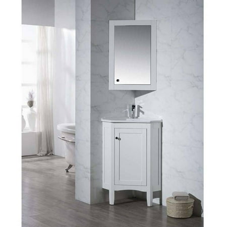 Stufurhome Monte White 25 Inch Corner Bathroom Vanity With