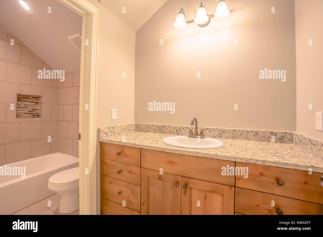 Toilet Bathtub And Vanity Area Inside The Clean Bathroom Of A Home