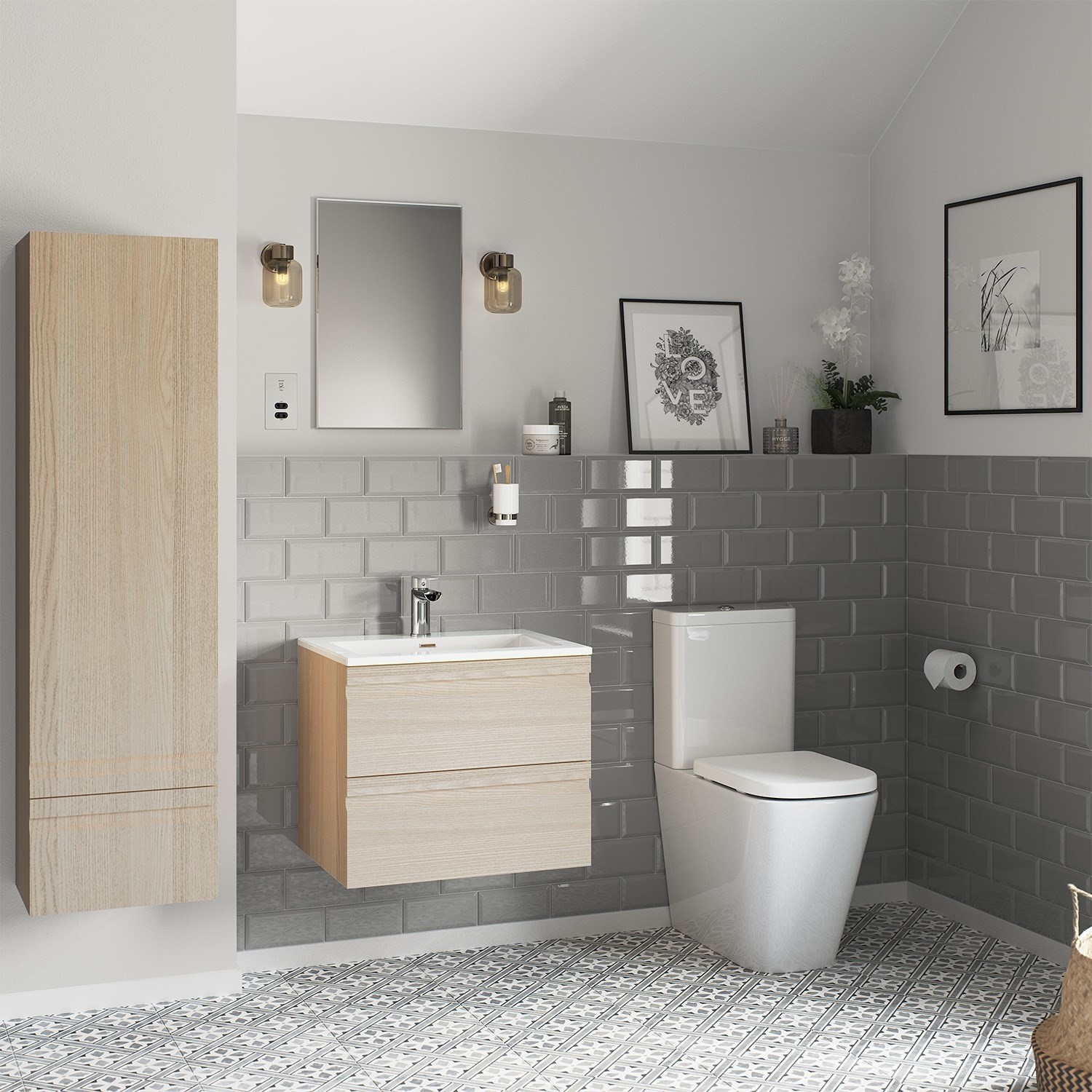 Wall Mounted Vanity Pack With Basin Light Oak Hudson Reed Erin