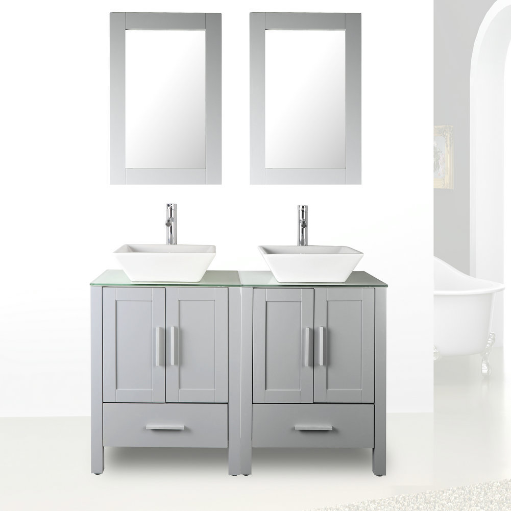 48 Double Sink Bathroom Vanity Cabinet Greay Paint Mdf Wood W
