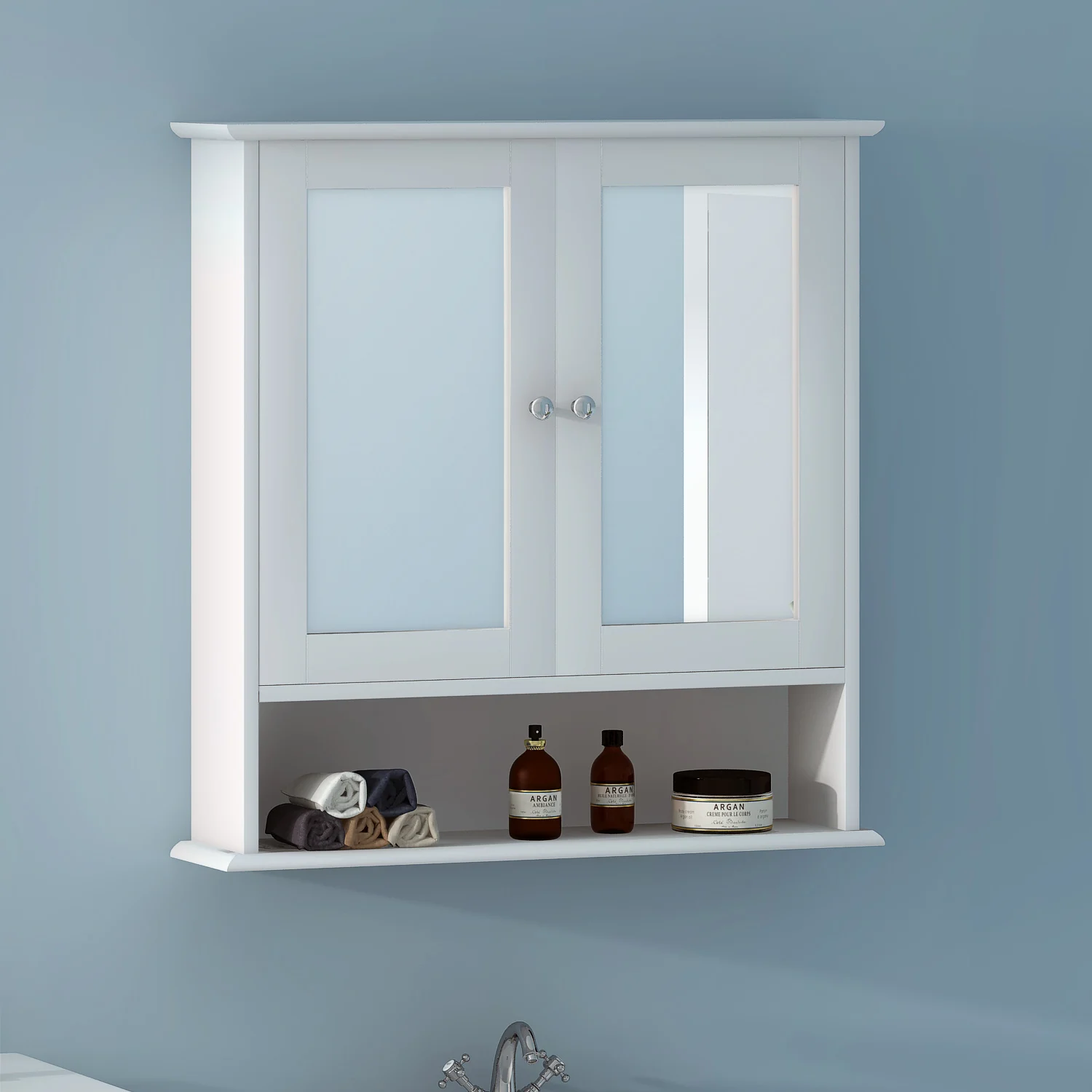 Mirrored Bathroom Cabinet Wall Mount Storage Cabinet Single Doors