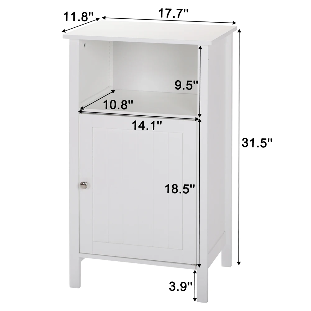 Free Standing Bathroom Cabinet Single Door One Shelf White High