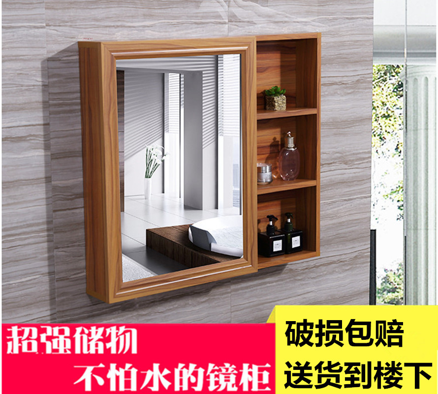 Solid Wood Bathroom Mirror Cabinet Mirror Box Wall Mounted Small