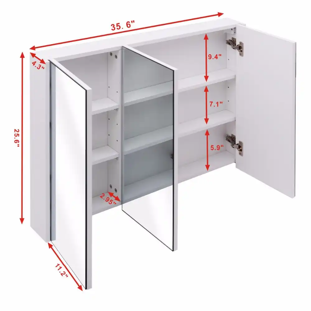 Giantex 36 Wide Wall Mount Mirrored Bathroom Cabinet With 3