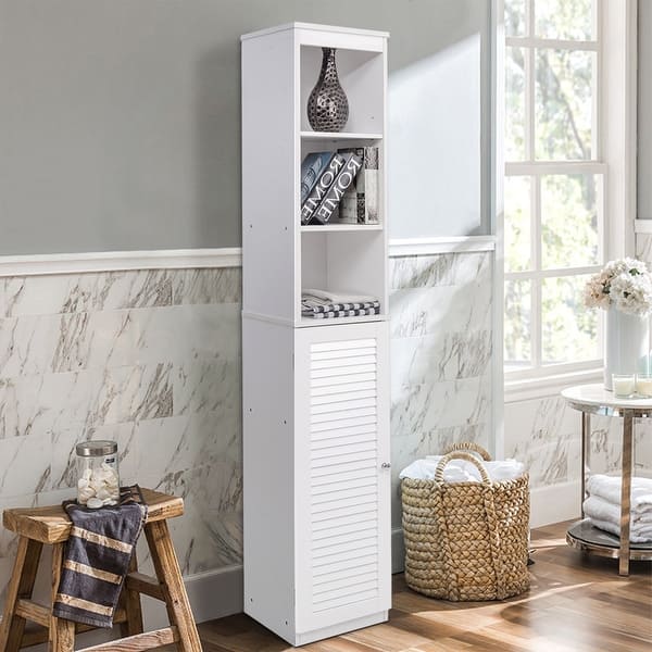 Shop Costway 71 Tall Bathroom Tower Cabinet Louvered Shelf