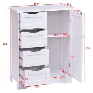 Goplus Wood Bathroom Floor Storage Cabinet Organizer W 4 Drawer