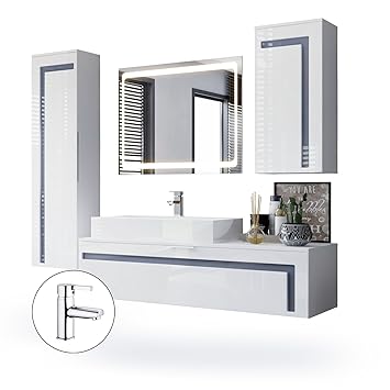 Vladon Bathroom Furniture Set Storage Cabinet Aloha Carcass In