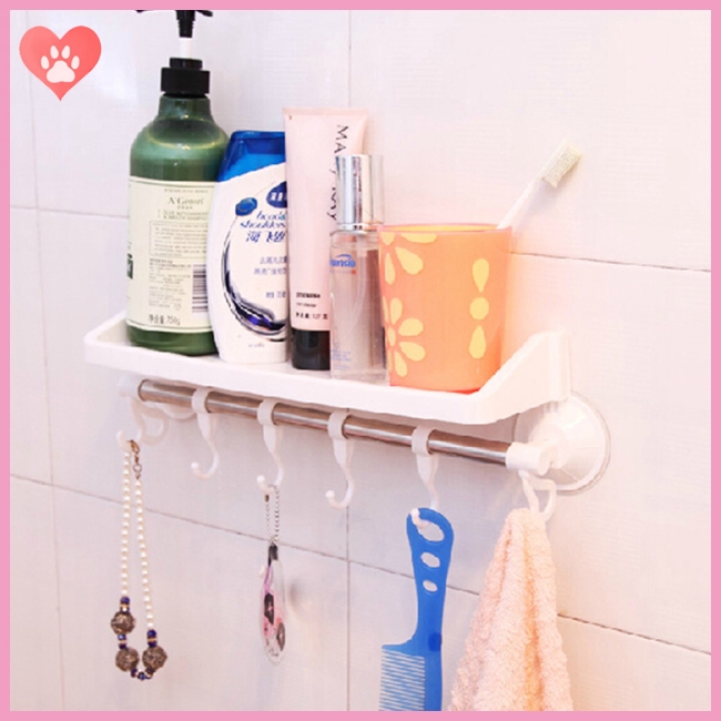 Bathroom Kitchen Storage Rack Suction Cup Towel Rack Rail Shelf