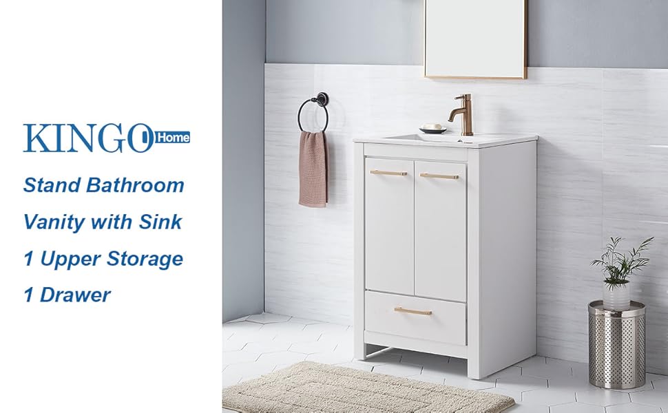 Kingo Home 23 Modern Matte White Bathroom Vanity Set Stand