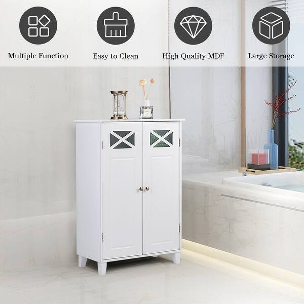 Shop Costway Free Standing Bathroom Cabinet Double Doors Wooden