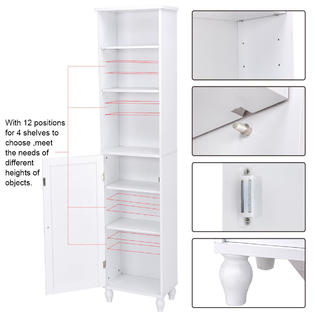 Gymax Bathroom Storage Cabinet Tower Bath Cabinet Storage Shelving