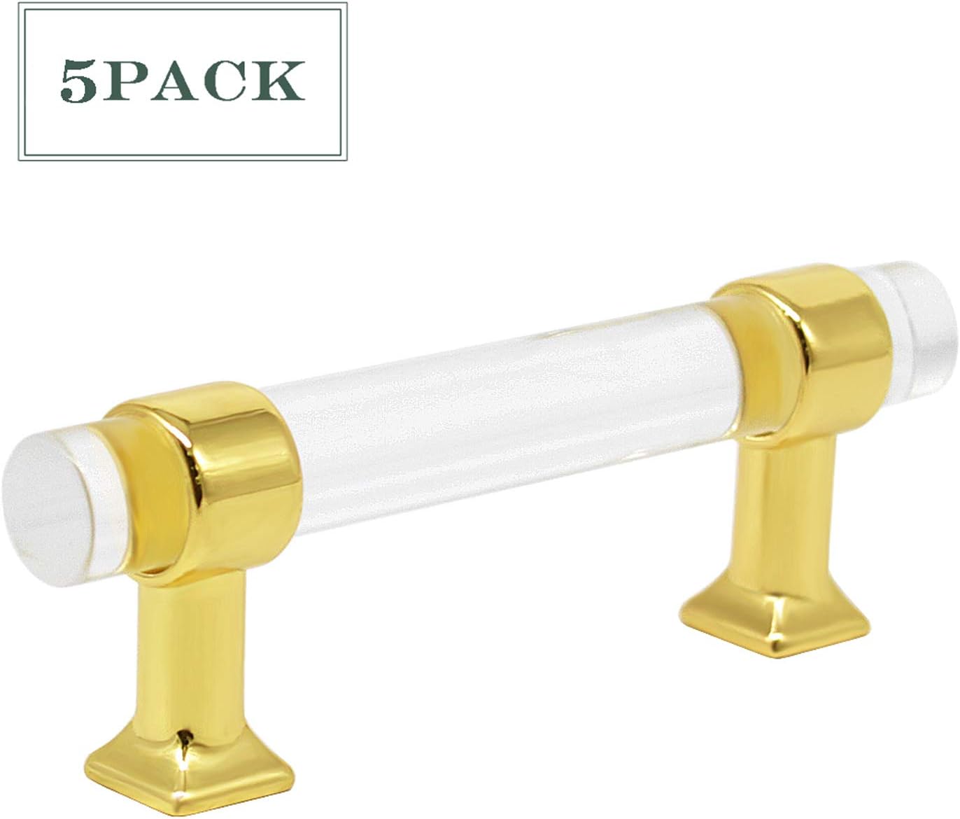 5 Pack Gold Base Crystal Cabinet Pull Handles For Drawer Dresser