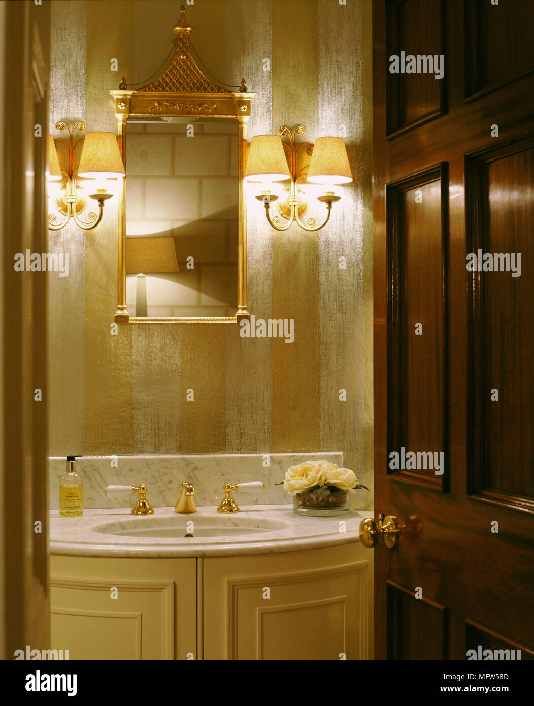 Traditional Bathroom Detail Marble Washbasin Set In Cupboard Unit