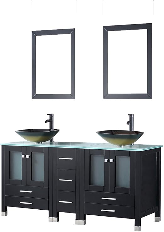 Walcut Black 60 Inch Bathroom Vanity And Sink Combo Double Cabinet
