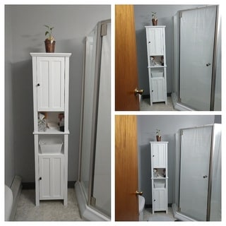 Giantex Bathroom Storage Cabinet Modern White Wood Tower Bath