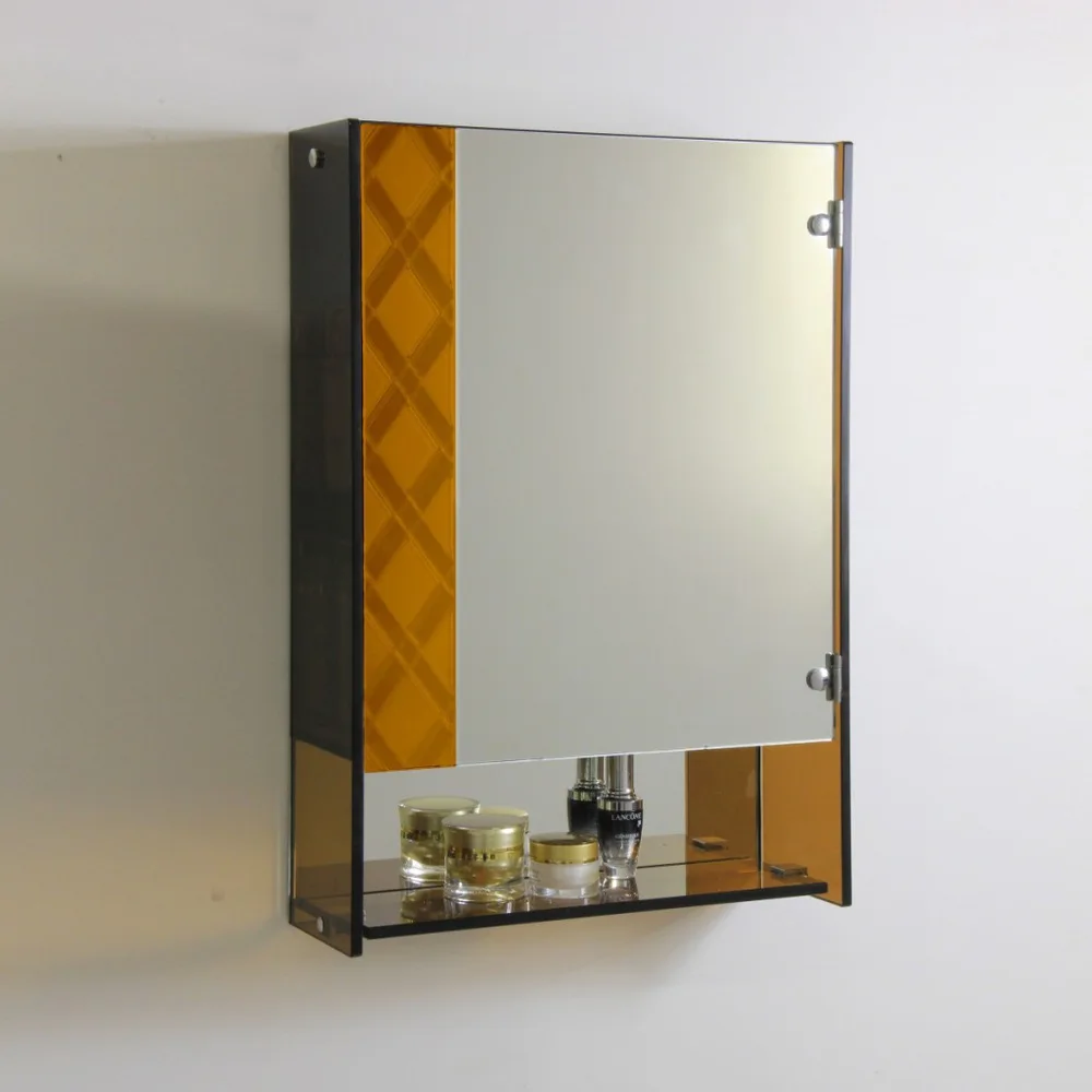 Italian Glass Carving Mirror Cabinet Multifunction Modern Style