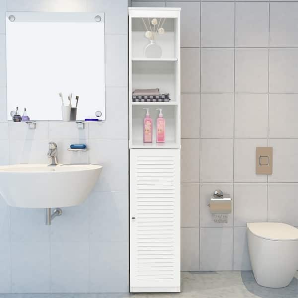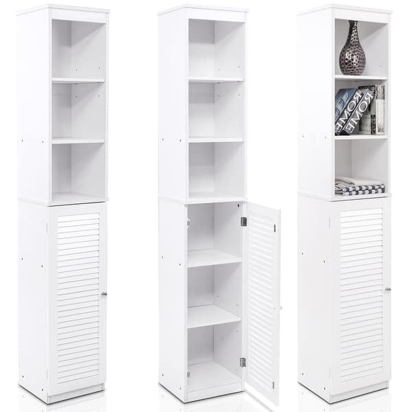 Shop Costway 71 Tall Bathroom Tower Cabinet Louvered Shelf