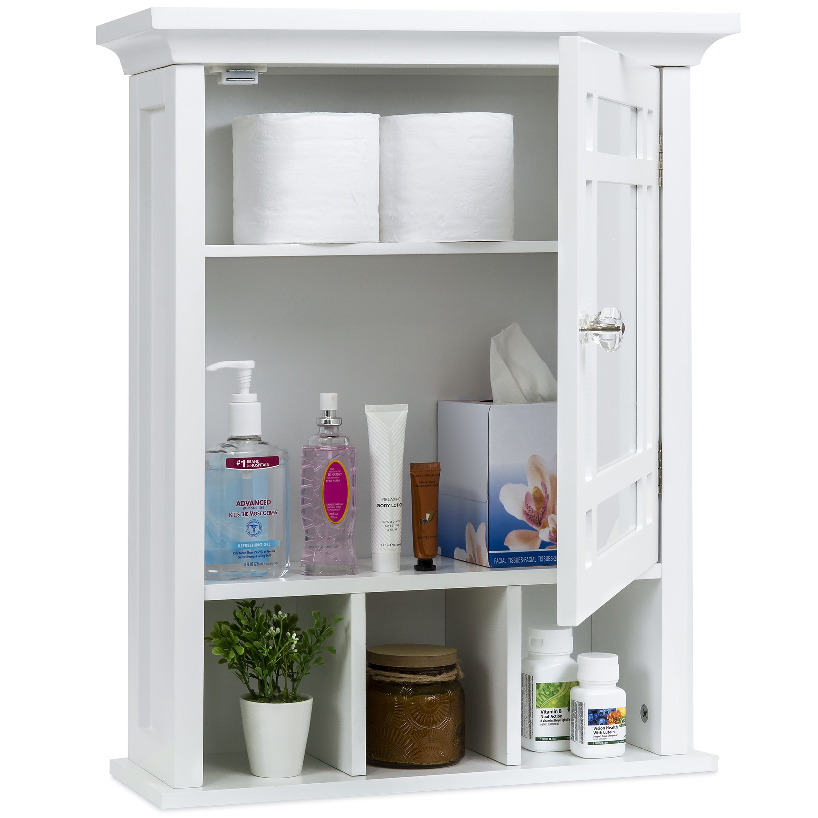 White Wall Mounted Bathroom Storage Cabinet Mirror Bath Furniture