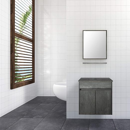 The piece sits directly on the ground and against one wall. A wall hung vanity is exactly as the name implies.