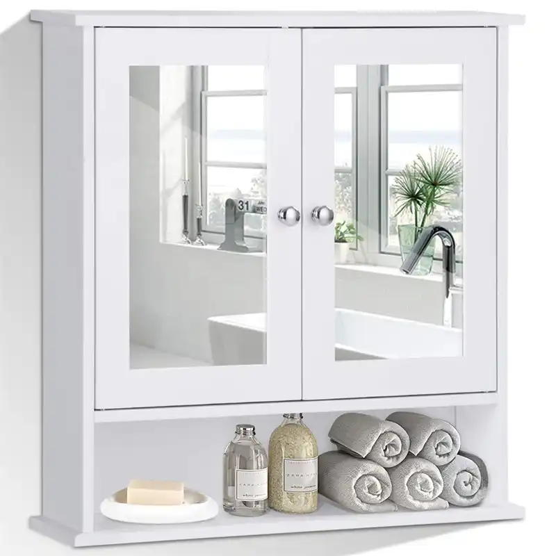 White Bathroom Wall Mounted Cabinet Wooden Mirrored Door Storage