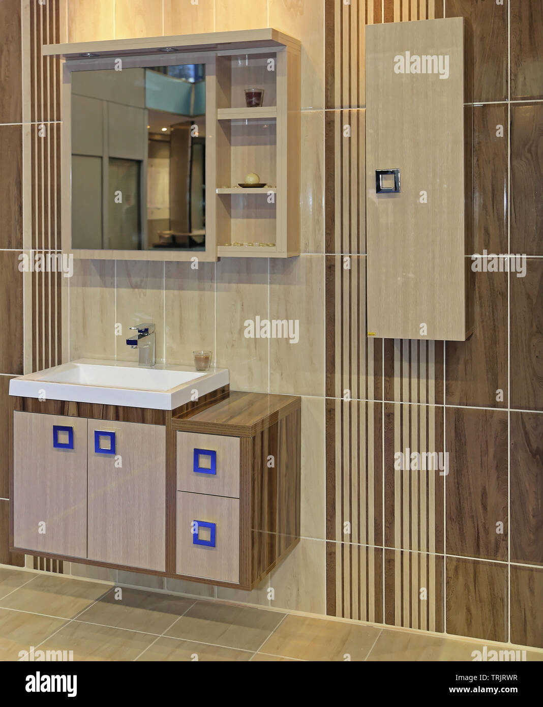 Bathroom Vanity Cabinet With Vintage Style Mirror Stock Photo