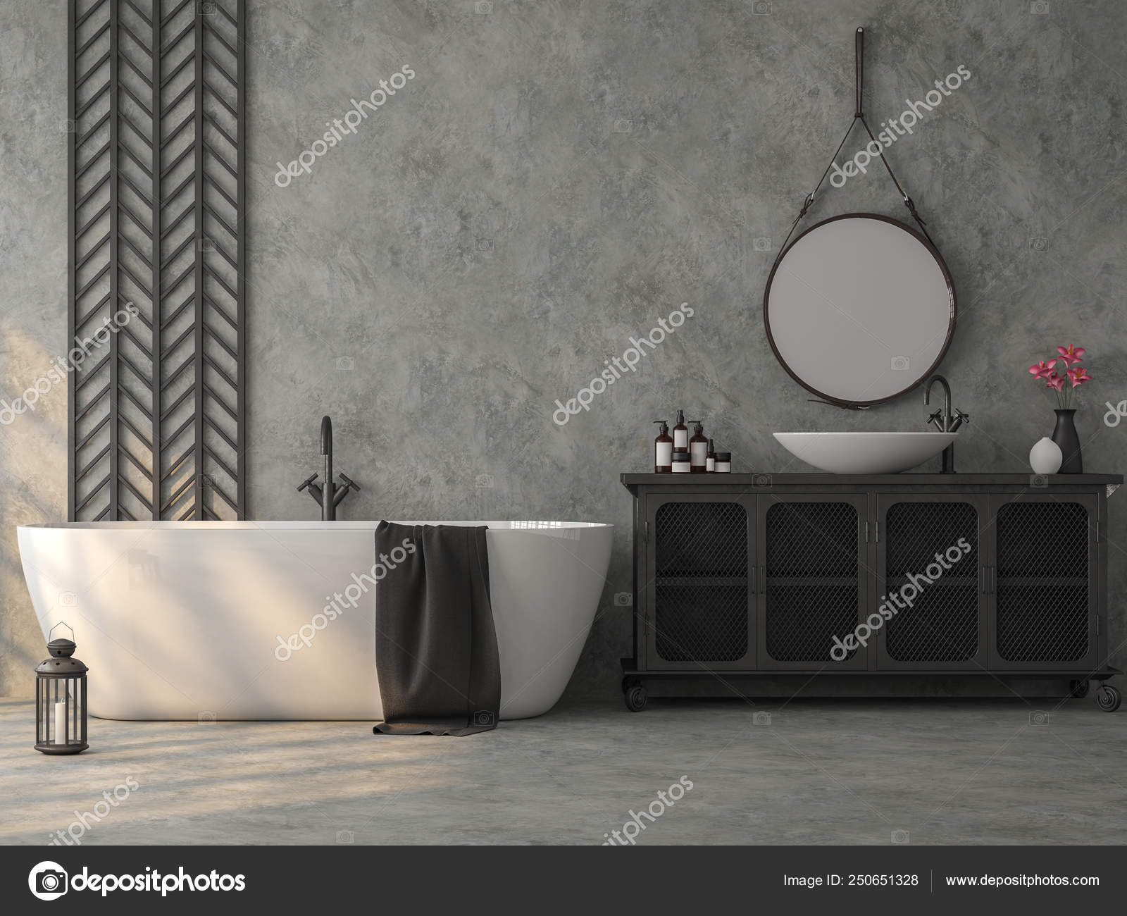 Industrial Loft Style Bathroom Polished Concrete Render Furnished