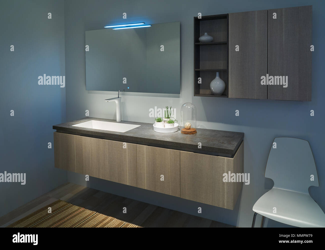 Minimalist Interior Of Modern Bathroom With White Inset Washbasin