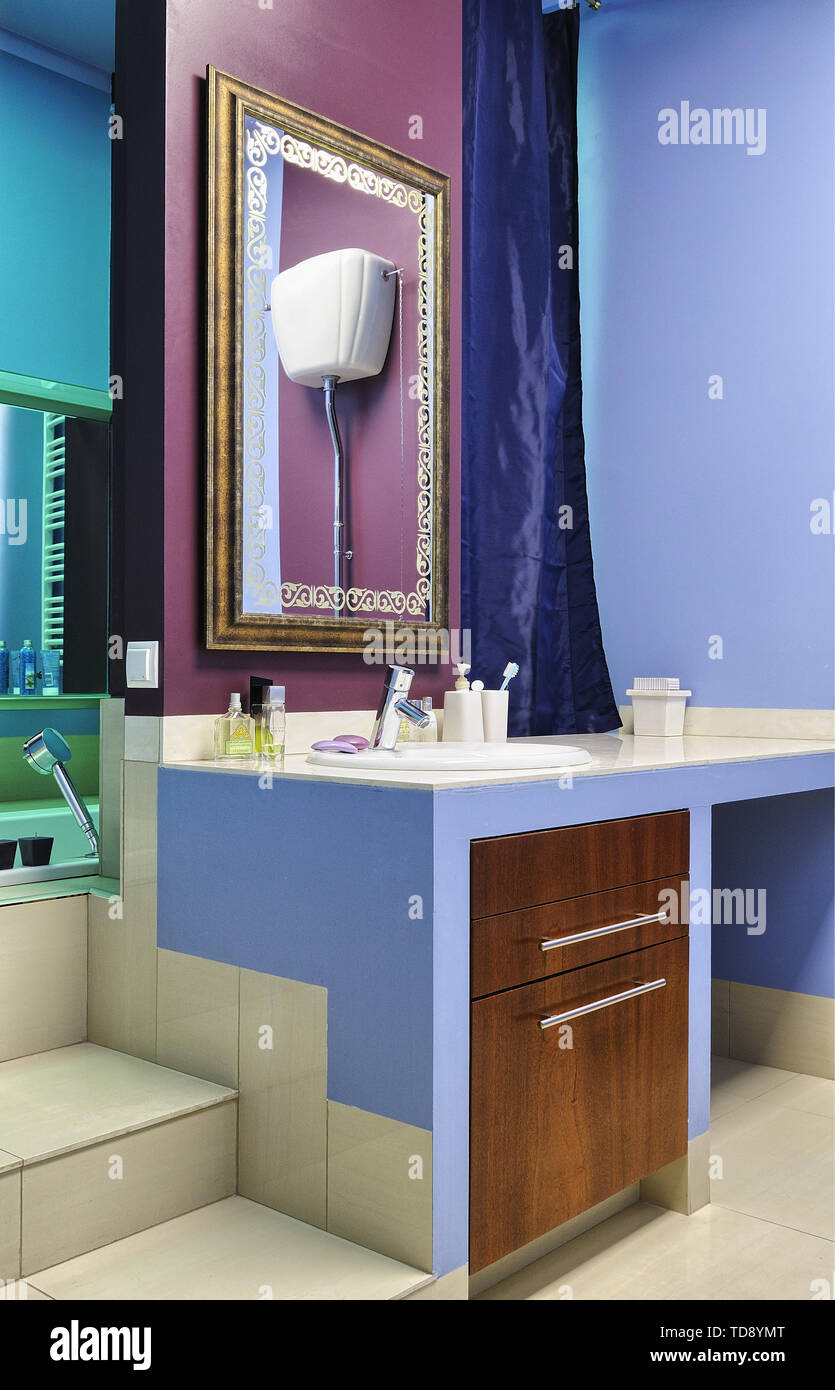 Empty Bathroom Interior In Soft Ivory Color Bathroom Vanity