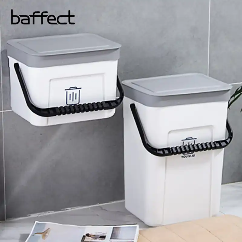 Wall Mounted Trash Can Waste Bin Plastic Bathroom Garbage Bin