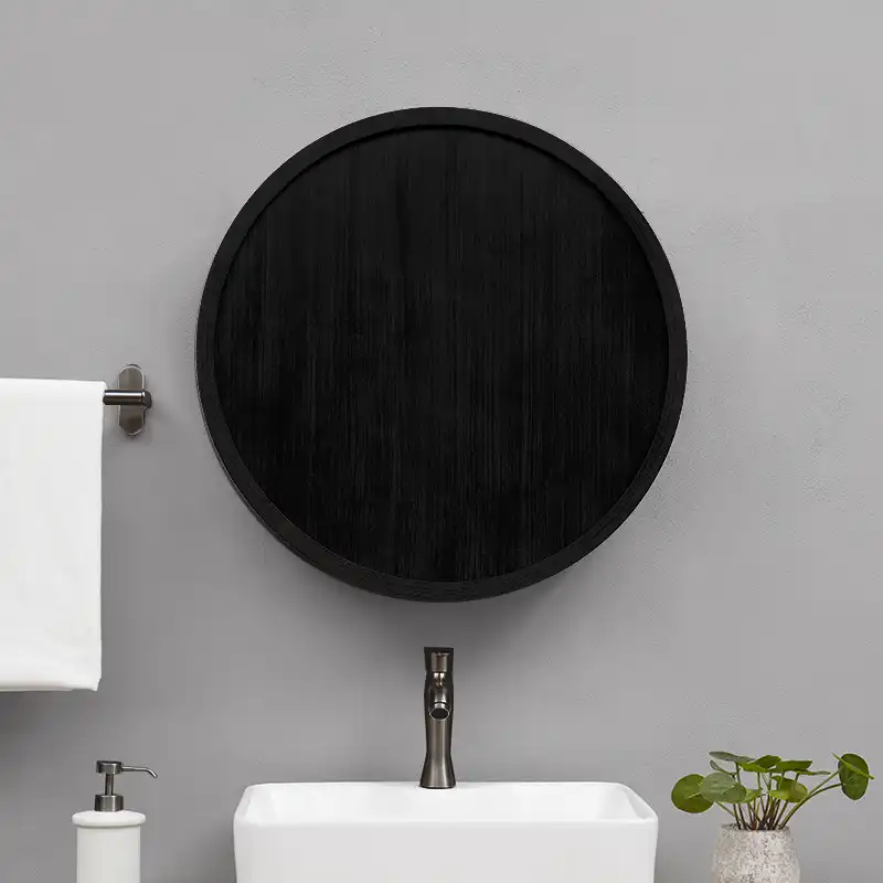 Solid Wood Bathroom Mirror Cabinet Bathroom Round Hidden Mirror