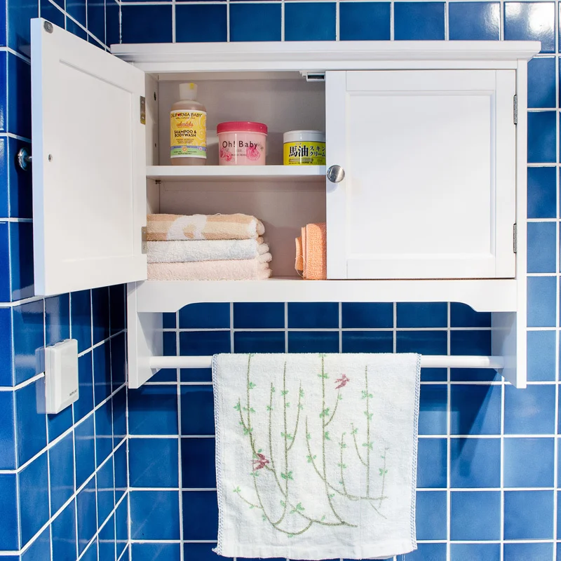 6599 65. Choochoo bathroom medicine cabinet 2 door wall cabinet wood hanging cabinet with adjustable shelves and towels bar white. We find the most popular place to install a bathroom wall cabinets is above the toilet but of course wherever you choose to hang your cabinet is your decision.