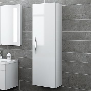 Essence Modern Tall White Bathroom Furniture Storage Cabinet Wall